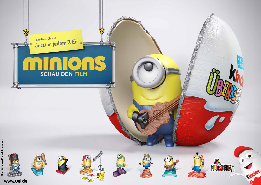 Die Minions sind im Ü-Ei. Moment! DIE Minions, die genauso aussehen wie das gelbe Ei?!? Na, da sind Plakat und TV Spot ja schon fertig.